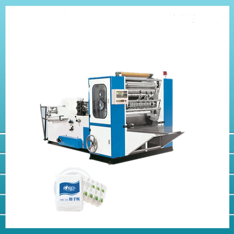 Three folded hand towel machine cutting the slitting hand towels through embossed, interaction fold into "N" type,When using the first piece comes out with the second piece.The products are widely used in hotel,office and kitchen for hands,convenient and health.The machine base paper applicability,folding,cutting,counting multi-channel working procedure, is characterized by a high speed,the paper neatly.