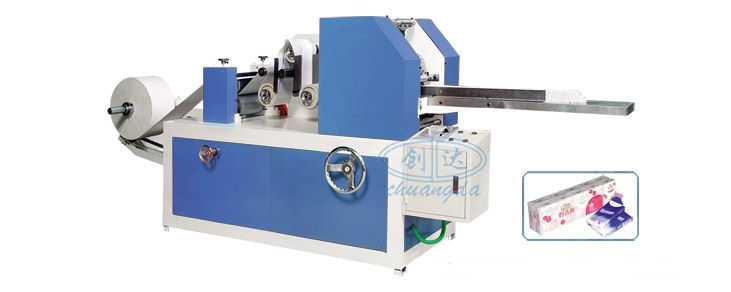 Embossing miniature handkerchief paper machine adopts the vaccum absorption folder tissue, first by embossing, then through cutting, automatic folding into small volume, easy to carry handkerchief paper.